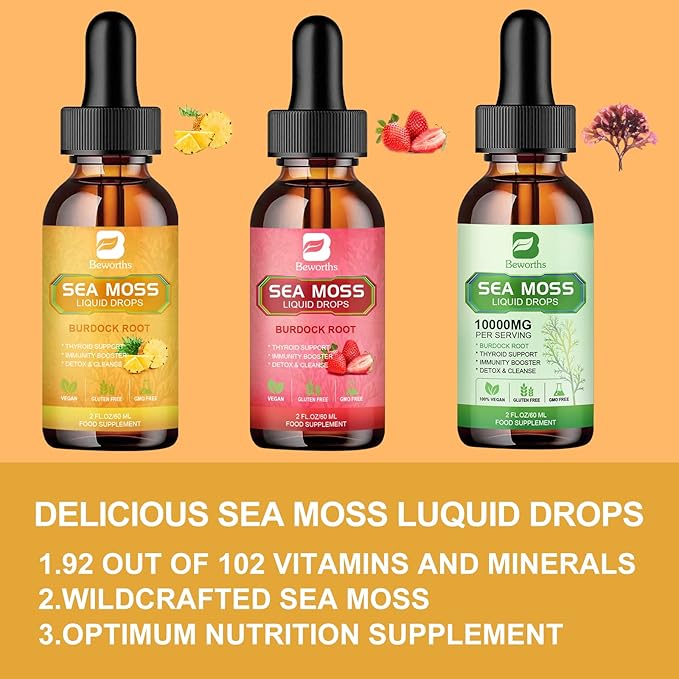 - 【Impressive Benefits】: Ultra-Strength organic sea moss and burdock root, immunity booster, support skin, and joint health. Irish sea moss is rich in a vital source of all the essential vitamins detox cleanse, improves your life, aids in muscle building, promotes health skin, and boosts your immunity. This sea moss drops support is gluten-free, non-GMO, and vegan.