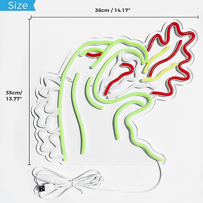 - PRODUCT DETAILS: The neon sign size is 14.17x13.77 inches with 78.7 inches USB cord, fully portable for any places and perfect size for wall decoration. Make a statement and design the mood in any room with this gorgeous sign sure to create the vibe you've always dreamed of!