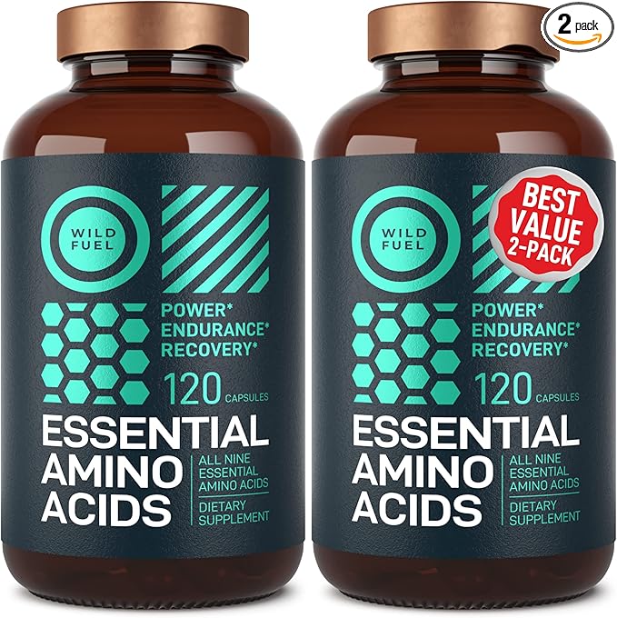 WILD FUEL Essential Amino Acid Complex - Lysine, Isoleucine, Valine, Leucine - All 9 Branch Chain Amino Acids Supplement for Power and Recovery for Women And Men - 60-days Supply, 240 Vegan BCAA Pills