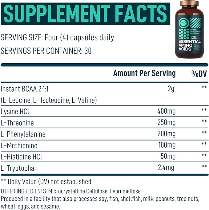 - Simple and effective essential amino acids supplement (EAA). Contains all 9 essential amino complex (complete with branched chain amino acids) for power, endurance, and recovery support.