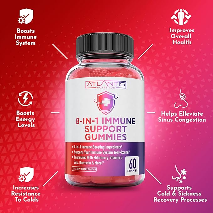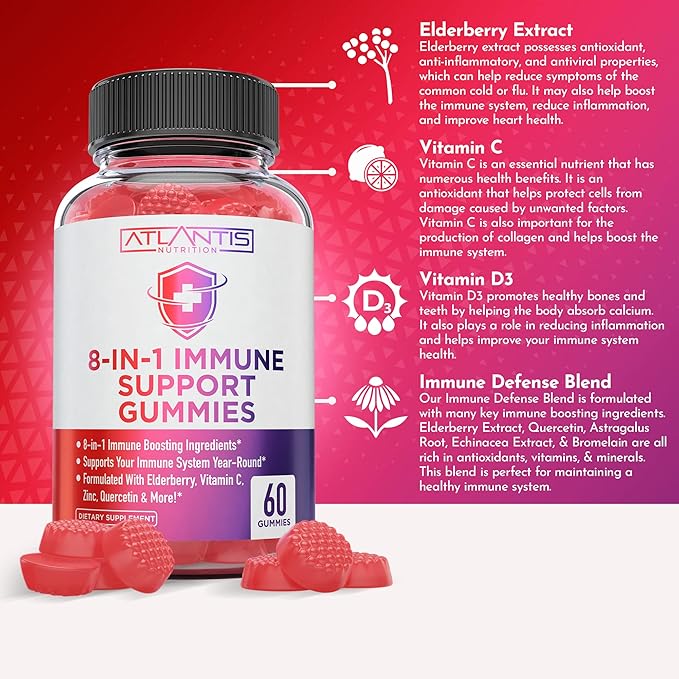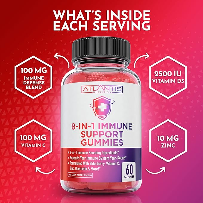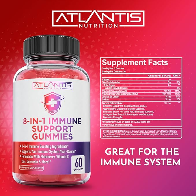- Quality Made In The USA: Manufactured by Atlantis Nutrition, these immune system gummies are made with top-notch ingredients right here in the USA. Each batch of our immunity gummy is rigorously tested for purity and potency, ensuring you get the best immune support supplement on the market