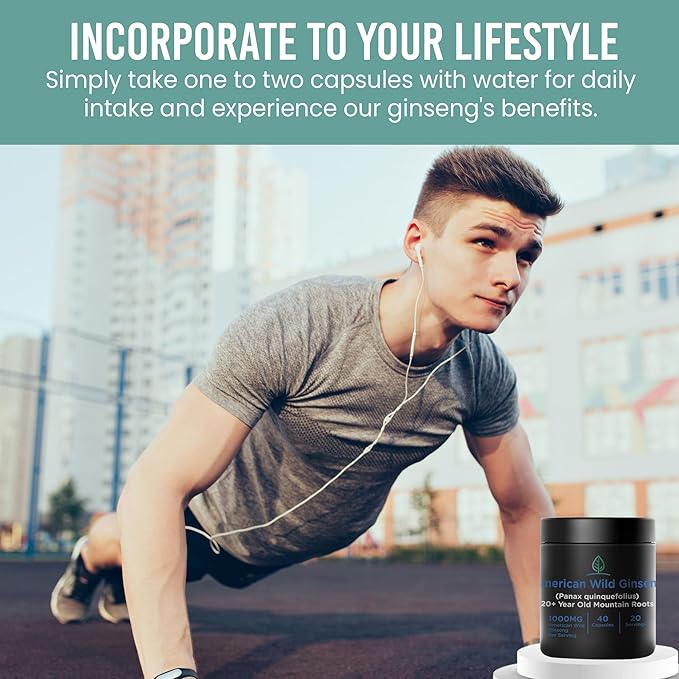 • WILD AMERICAN GINSENG: Our premium ginseng capsules are made from American Ginseng (Panax Quinquefolius) roots that are wild harvested in the Appalachian Mountains after maturing at least 20 years.