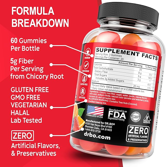 - Gut Health Supplement: Fiber supplement gummies prebiotics aid gut health & fiber cleanse detox; our tasty halal fiber gummies for adults & kids provide inulin prebiotic & chicory root fiber support