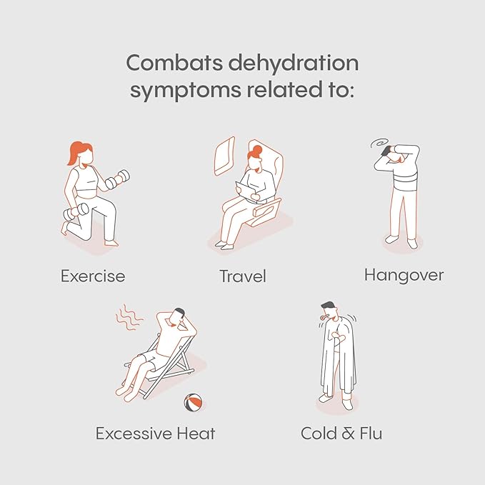 - Low Sugar for Accelerated Hydration: When it comes to rapid rehydration, glucose (sugar) is key. When combined with salt at the perfect ratio, glucose accelerates water and electrolyte absorption. But unlike sports drinks or electrolyte products, we use precisely the optimal amount for maximum absorption and not a gram more.