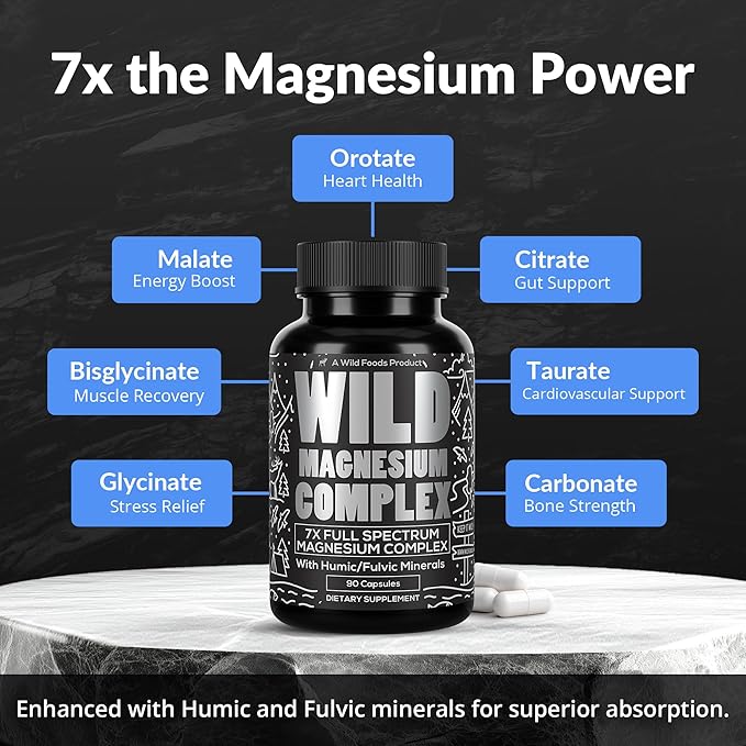 - Primary Supplement Type : Wild Foods Magnesium Complex Supplement with 7X Forms, 90 Capsules | High Absorption, Full Spectrum, Easy Digestion | 500mg Glycinate, Bisglycinate, Malate, Orotate, Citrate, Taurate Wild Foods Magnesium Complex Supplement with 7X Forms, 90 Capsules | High Absorption, Full Spectrum, Easy Digestion | 500mg Glycinate, Bisglycinate, Malate, Orotat… See more