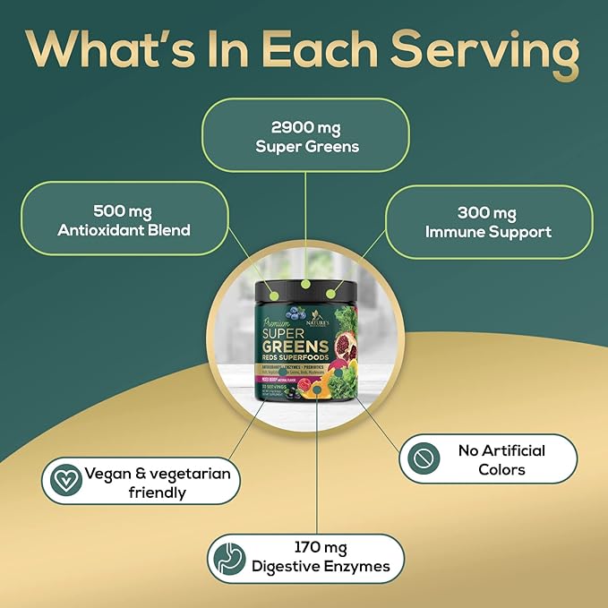 - Super Greens Powder Drink Mix by Nature's Nutrition: super greens powder and berry chlorella daily drink foods for grass green juice mix powdered probiotics servings smoothie spirulina superfood supplements veggie capsules digestive fruit energy fruits original en free gummies with beet blend enzymes health non probiotic reds root smoothies vitamin gut premium strong veggies wheat