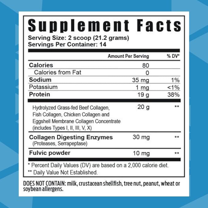 - Hydrolyzed Multi-Collagen Complex with Fulvic Powder: Features fulvic acid to enhance nutrient absorption, detoxification, and supports energy production for maximum benefits.