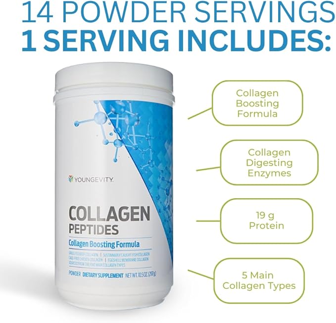Youngevity Multi-Collagen Peptides Powder with Fulvic Powder – Hydrolyzed Grass-Fed, Marine, Chicken, & Eggshell Membrane Collagen – Hair, Skin, Nails, Joint, Bone Support – I, II, III, V, X – 11.4 oz