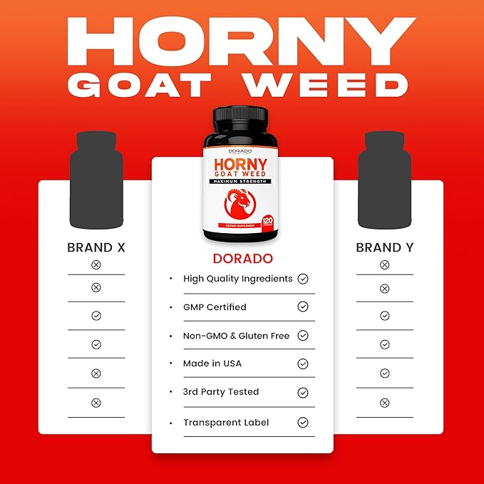 - Horny Goat Weed (10X Strength) - This powerful Horny Goat Weed blend may promote Blood Flow, Circulation, Energy, and Joint + Back Support. Start your day on top & dominate all aspects of your life by adding Dorado’s Horny Goat Weed supplement to your daily routine!