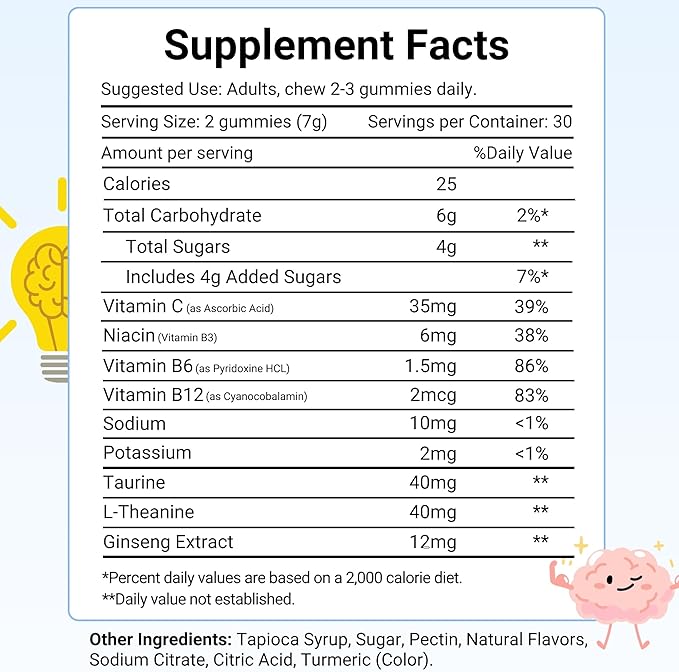 • SUGGESTED USE: Adults can chew 2 – 3 gummies per day to support cognitive health.