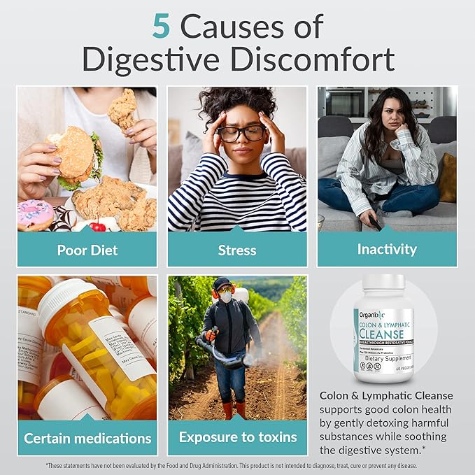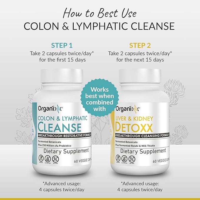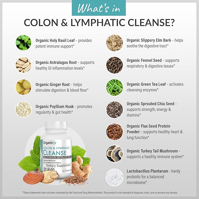 Organixx Lymphatic & Colon Cleanse Supplement with 250 Million CFU Probiotics for Gut Health for Women & Men, Digestive Support, Lymphatic System, Gluten Free, Non GMO, 60 Vegetarian Capsules