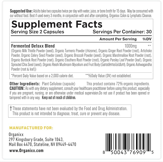 Organixx Kidney & Liver Support Cleanse Supplement, Milk Thistle Reishi Herbal Formula For Digestive Health, Kidney & Liver Health, Sleep & Energy Support, Gluten Free, Non GMO, 60 Vegetarian Capsules