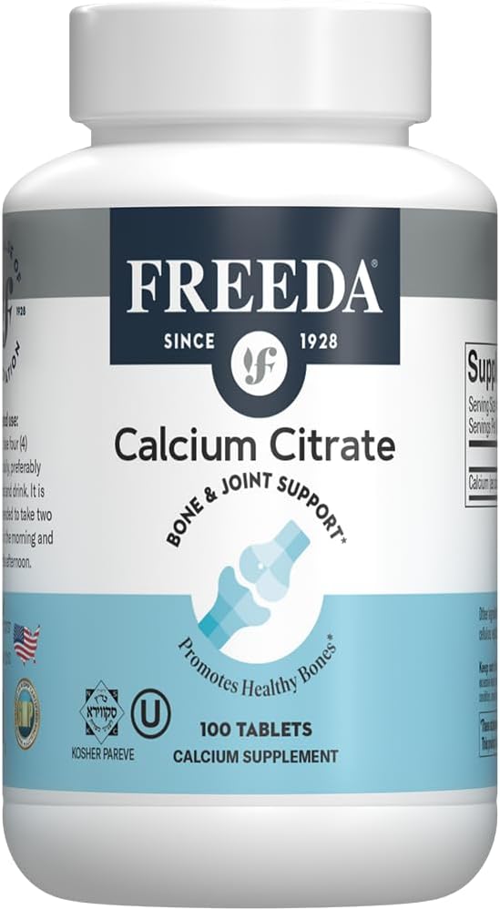 Freeda Calcium Citrate - Kosher Vegan Calcium Supplement for Women & Men - Bone Health & Joint Support - Calcium 1000mg per Serving - Calcium Citrate 1000mg Tablets Calcium Without Vitamin D (100 Ct)