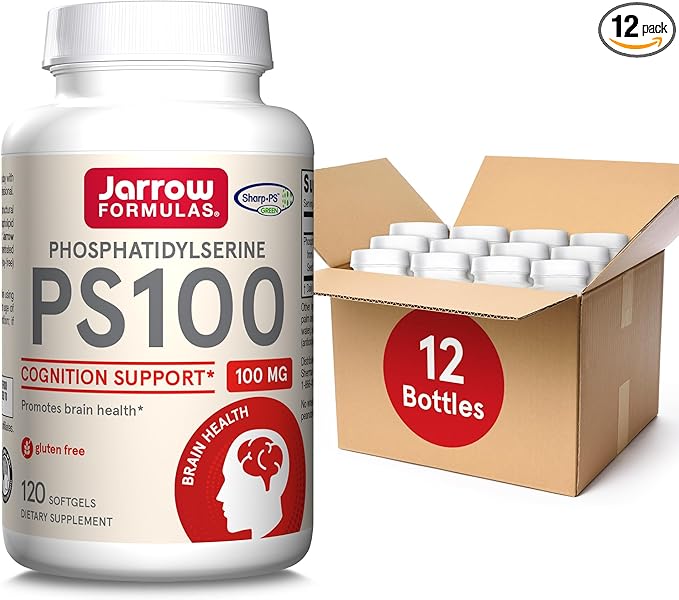 Jarrow Formulas PS100 Phosphatidylserine 100 mg, Dietary Supplement for Brain Health and Cognition Support, 120 Softgels, 40-120 Day Supply, Pack of 12