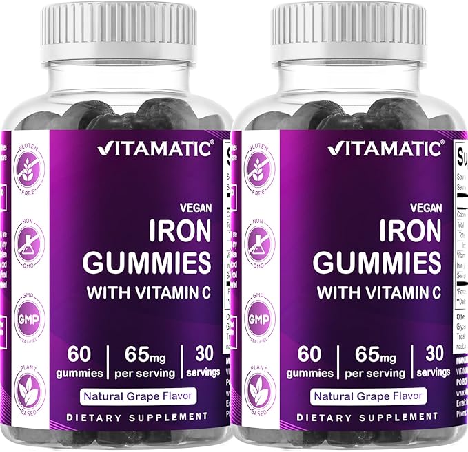- DELICIOUS NATURAL GRAPE FLAVOR TASTE of Vitamatic Iron Gummies - Avoid consuming large Iron Capsules, Tablets or Pills which gives unpleasant after taste & can not go down easily