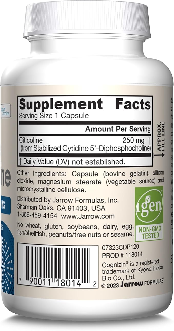 Jarrow Formulas Citicoline CDP Choline 250 MG, CDP Choline Supplement Supports Brain Health, Performance and Memory, 120 Capsules, Up to a 120 Day Supply, Pack of 12
