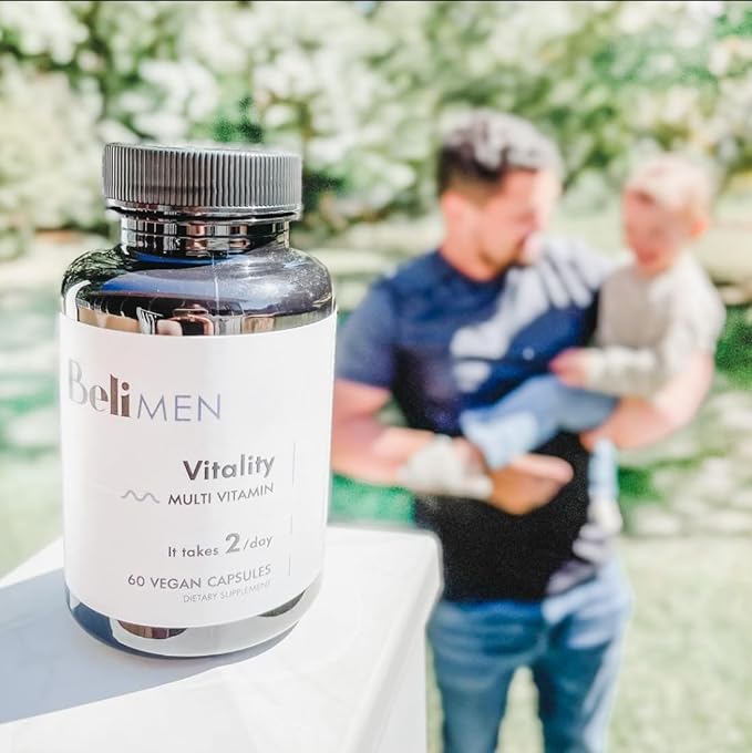 Beli Men Prenatal Multivitamin Preconception Fertility Support, Enhanced Sperm Health, Sperm Count & Motility, Testosterone, 60 Capsules with Vitamin E, B6, B12, Zinc, Folate & CoQ10, 30-Day Supply