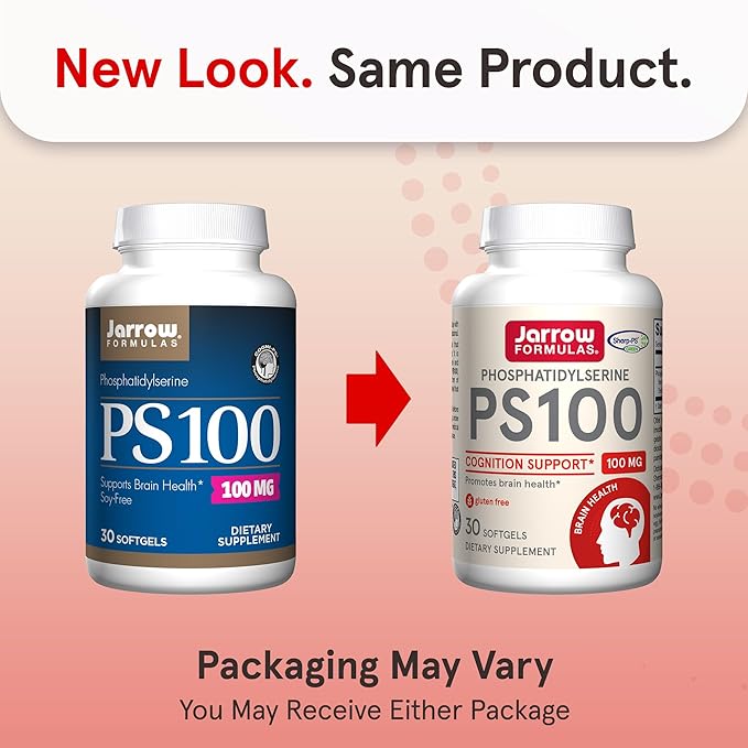 - Brain Health and Cognition Support Supplement: Contains one 30 count bottle of Jarrow Formulas PS100 Phosphatidylserine 100 mg softgels for a 10-30 day supply.