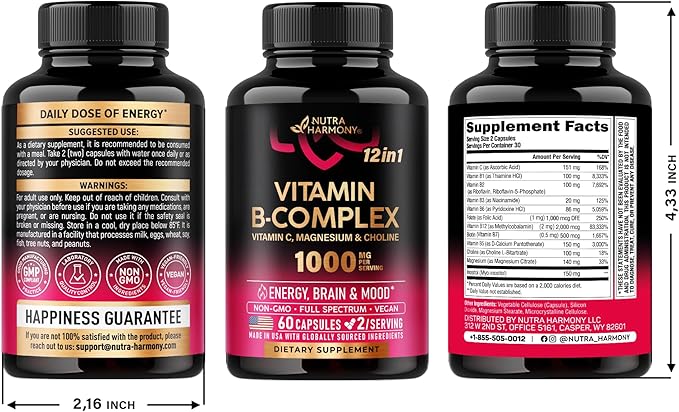 - Made with Care & Love – At NUTRAHARMONY, we desire to provide you with quality and outstanding service. If, for any reason, you are not happy with Vitamin B Complex capsules, just let us know! Drop a message to our support team to share your outstanding experience with B complex vitamins! We care for your well-being!