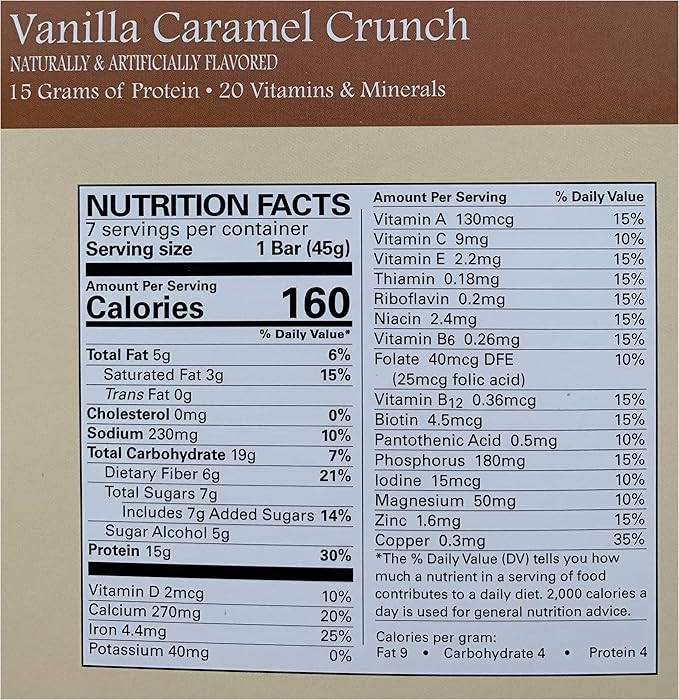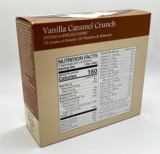 Vanilla Caramel Crunch Bar - New Journey Weight Loss & Wellness - High Protein Meal Replacement Nutrition Bar (7 bars/box)