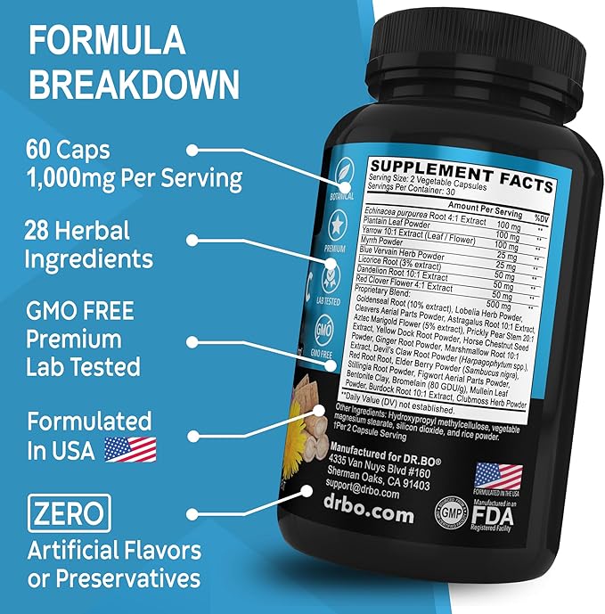 - 28 Powerful Herbs: Our lymphatic drainage supplements have the most important herbs for lymphatic cleanse & detox support like echinacea, plantain, ginger, dandelion, red root, red clover & figwort