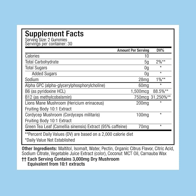 - Our mushroom gummies enhance the sharpness of your mind - Ideal for students acing exams, professionals meeting deadlines, and anyone seeking a mental edge. These nootropic gummies are easy to consume and contain B12 and B16.