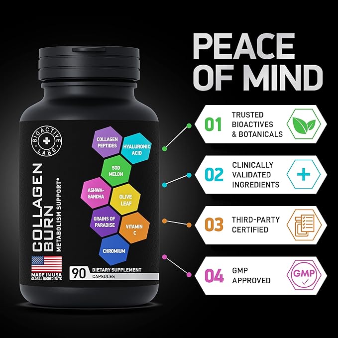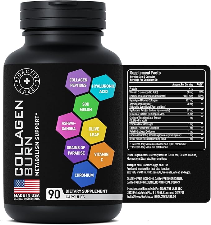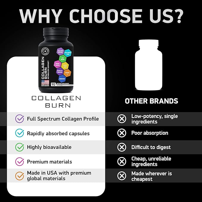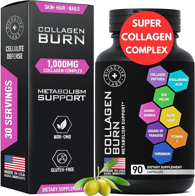 Thermogenic Multi Collagen Burn Capsules - Advanced Collagen Complex Type I, II, III, V, X Collagen for Cellulite Defense - Hydrolyzed Collagen Peptides Plus Hyaluronic Acid - 90 Collagenic Burn Caps