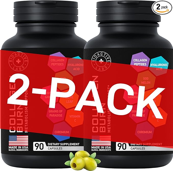 Thermogenic Multi Collagen Burn Capsules - Hydrolyzed Collagen Peptides Plus Hyaluronic Acid - Advanced Collagen Complex Type I, II, III, V, X Collagen for Cellulite - 2-Pack, 180 Collagenic Burn Caps