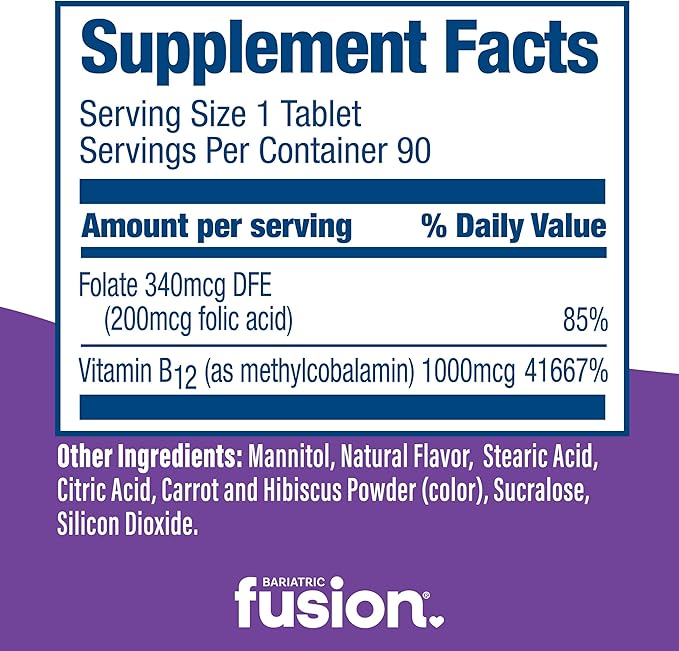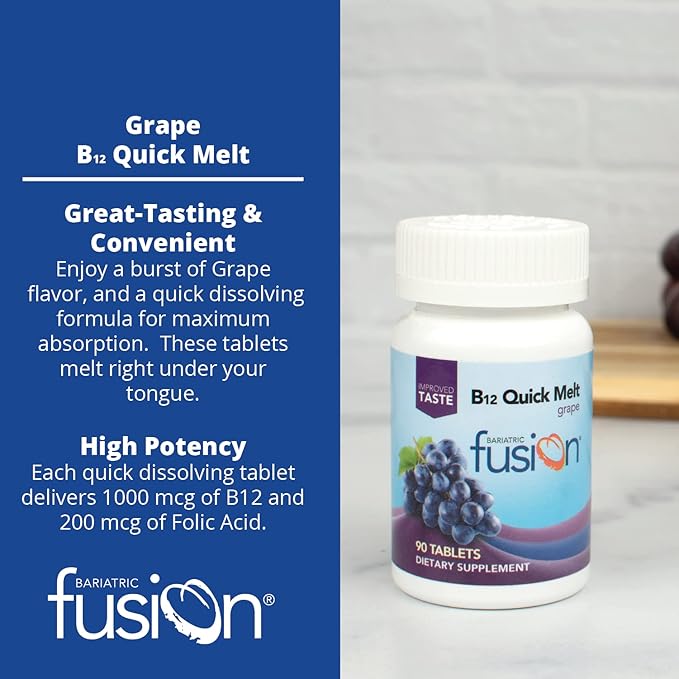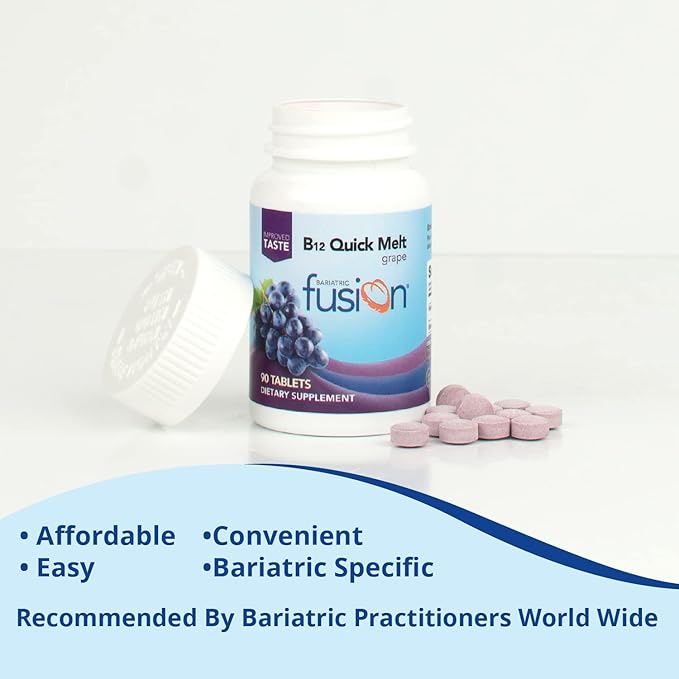 Bariatric Fusion Vitamin B12 Quick Melt | Grape Flavored Tablets | Dissolves On Your Tongue | Post Bariatric Surgery Patients | Gluten, Dairy & Soy Free | 90 Count