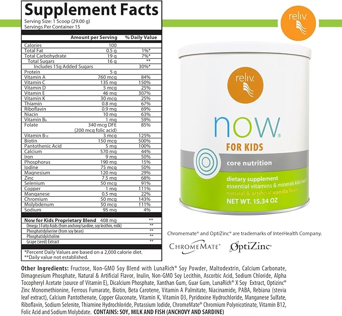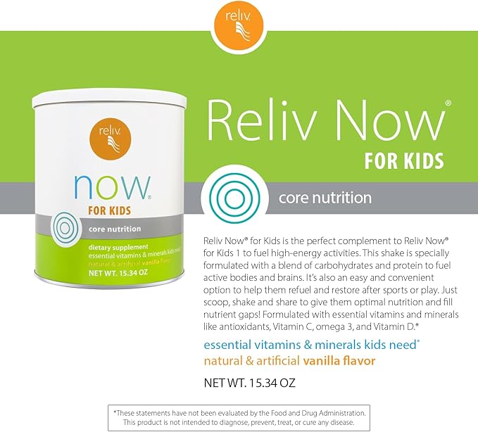 - ✰ EASY, CONVENIENT: Makes a great way to start your kid's day – just scoop, shake and share! “I don't have to worry about picky eaters. With Reliv Now for Kids, my boys get the essential vitamins and minerals their growing bodies need in one yummy shake!” - Katie M.