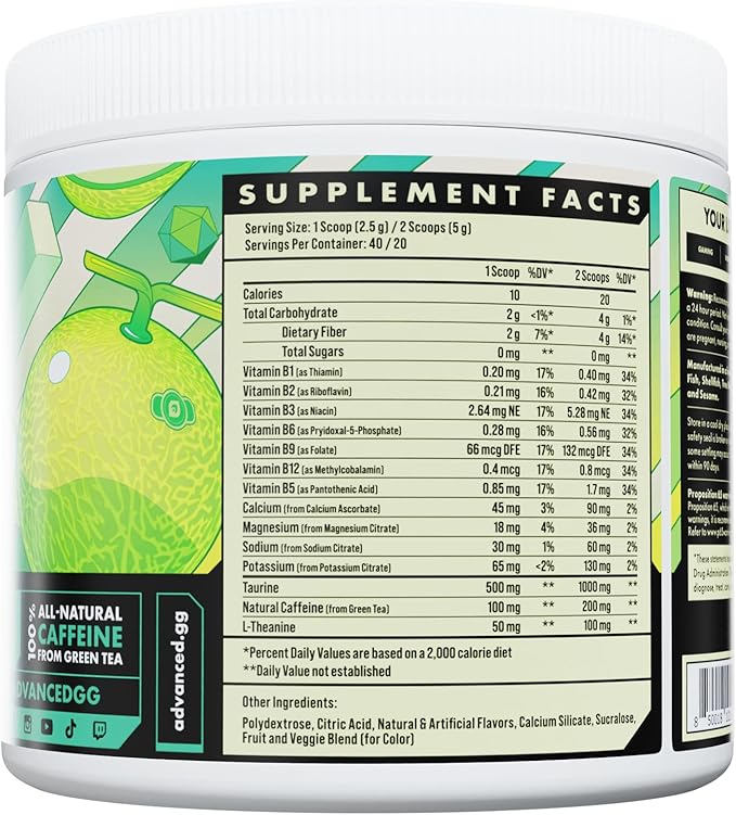 Advanced Energy Boosting Formula with Electrolytes for Hydration - L-Theanine to Combat Jitters Sugar Free & Keto Friendly No Maltodextrin (40 Servings) (Melon Cream Pop)