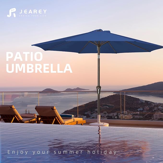 JEAREY 9FT Outdoor Patio Umbrella Outdoor Table Umbrella with Push Button Tilt and Crank, Market Umbrella 8 Sturdy Ribs UV Protection Waterproof for Garden, Deck, Backyard, Pool (Dark Blue)