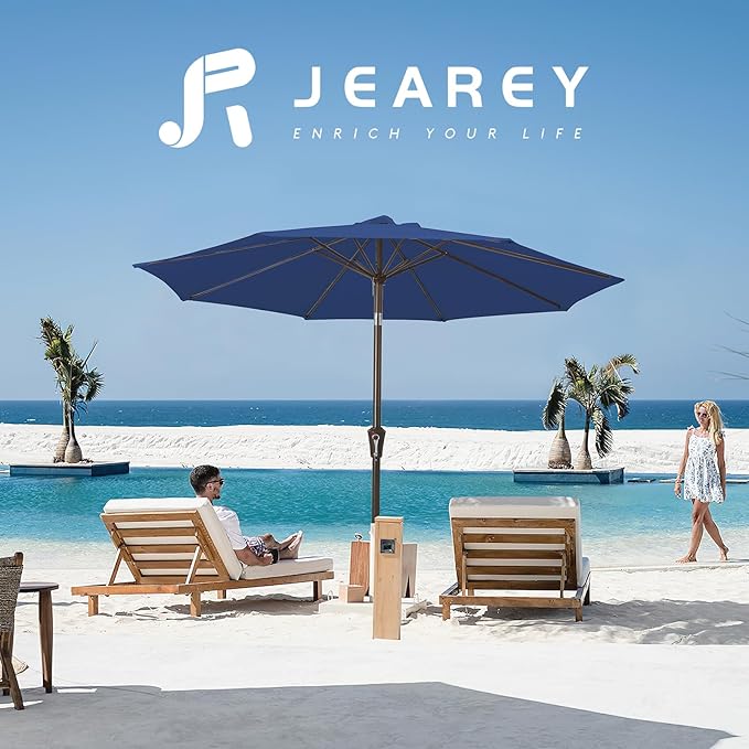 - STURDY & DURABLE: JEAREY always puts safety first. To reduce swaying and increase overall strength of our umbrella, the entire structure of yard umbrella is made of sturdy iron material. Powder coated iron pole and 8 sturdy ribs provides stronger support and are built for stability