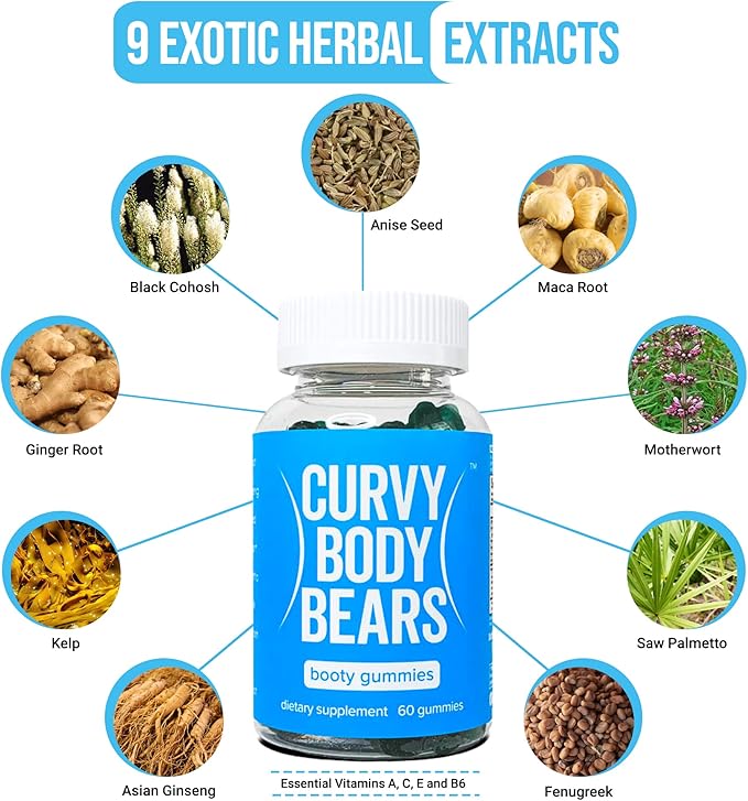 - SUPPORT YOUR FEMININE FIGURE: Whether you're looking to enhance your curves or simply want to feel more confident in your own skin, Curvy Body Bears Bum Gummies are here to help. With their powerful blend of ingredients, these gummies support your feminine figure and overall well-being.
