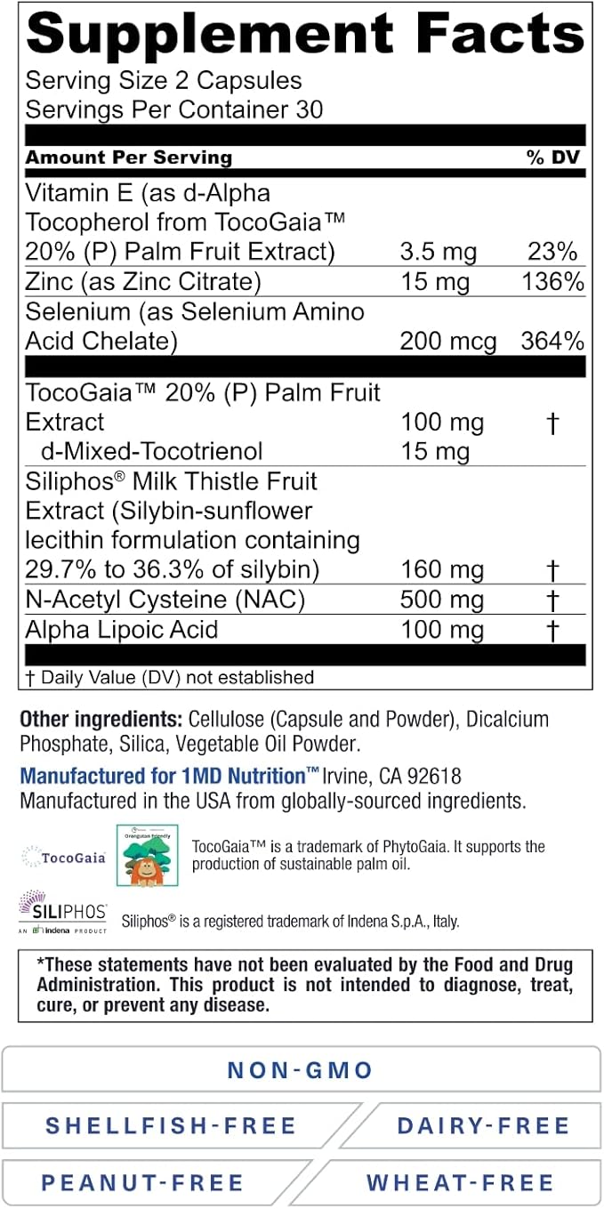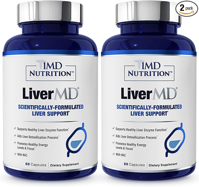1MD LiverMD - Liver Support Supplement | Siliphos Milk Thistle Extract - Highly Bioavailable, for Liver Support | 60 Capsules (2-Pack)
