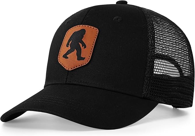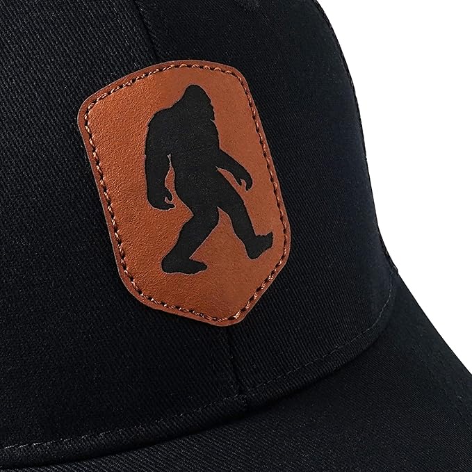 - Wild Bigfoot Designs: Features an exquisite Bigfoot leather logo on the front of these leather patch hats. These Bigfoot leather patch hats will soon become your favorites. Because you will get comments and compliments on it wherever you wear these Bigfoot hats for men.