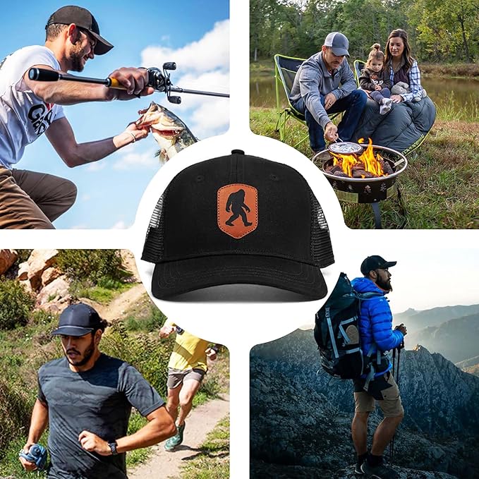 Mesh Bigfoot Hat Leather Cap for Men- Great Snapback Closure Sasquatch Hat for Hunting & Hiking