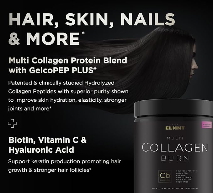 - ๐๐จ๐ฅ๐ก โฌฉ ๐๐๐๐จ๐ง๐ฌ โฌฉ ๐๐๐๐๐ง๐ - ELMNT Super Multi Collagen Burn Premium Collagen Peptides Powder for Women made with a comprehensive & holistic formula to support a healthy metabolism, stronger hair, radiant skin plus healthy gut & digestion for comprehensive health & body weight management.*