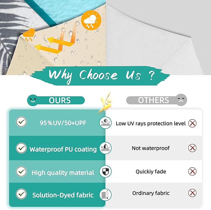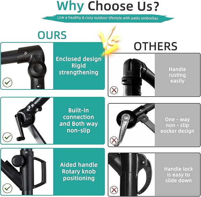 - Convenient Tilt Mechanism: Crafted with an infinite tilt system, you can adjust the angle of the umbrella as you like. keeping the area protected throughout the day. The umbrella is also easy to open or close in few seconds for easy storage.