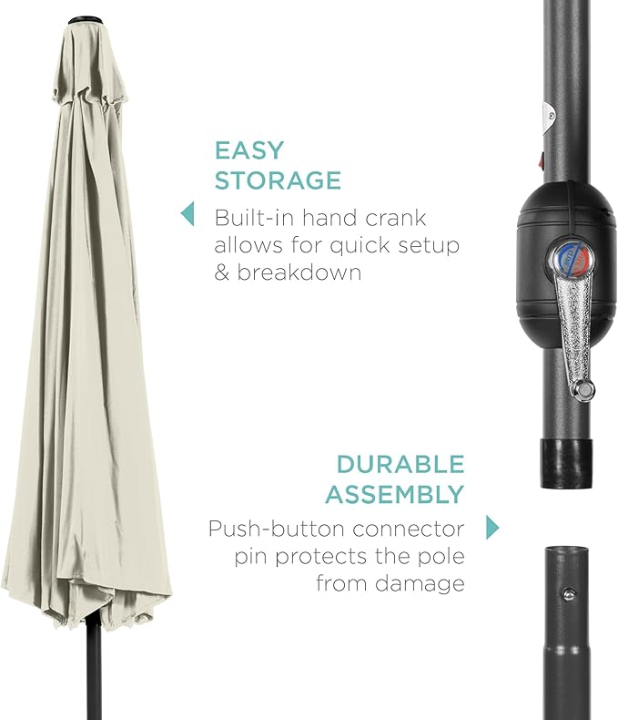 - CONVENIENT CRANK HANDLE: Easy open/close system puts the umbrella up in just seconds with minimal effort
