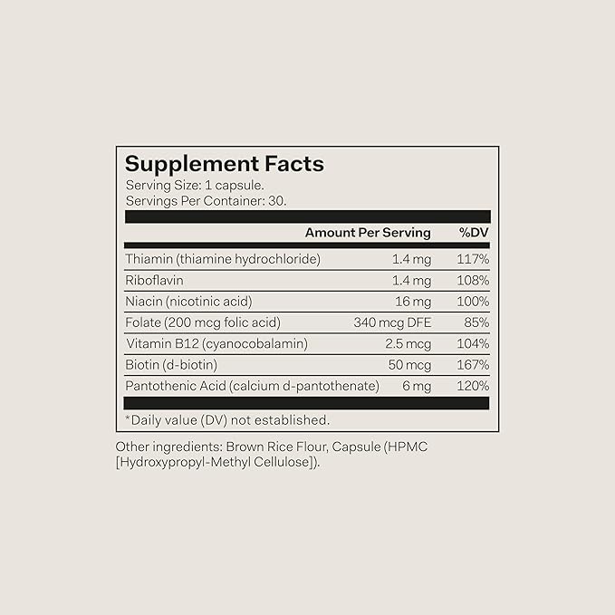 The Nue Co. Vitamin B Supplement, Supports Energy, Promotes Healthy Skin and Hair, Vegan, Gluten Free, 30 Capsules