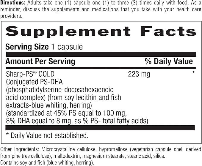 - SUPPORTS COGNITIVE HEALTH - Sharp-PS GOLD or conjugated phosphatidylserine-docosahexaenoic acid (PS-DHA) is obtained from soy lecithin and fish. It appears to be an important phospholipid component to your brain and nerve cell membranes. It reportedly enhances cognitive health protects the integrity of brain cell membranes and reduces stress.