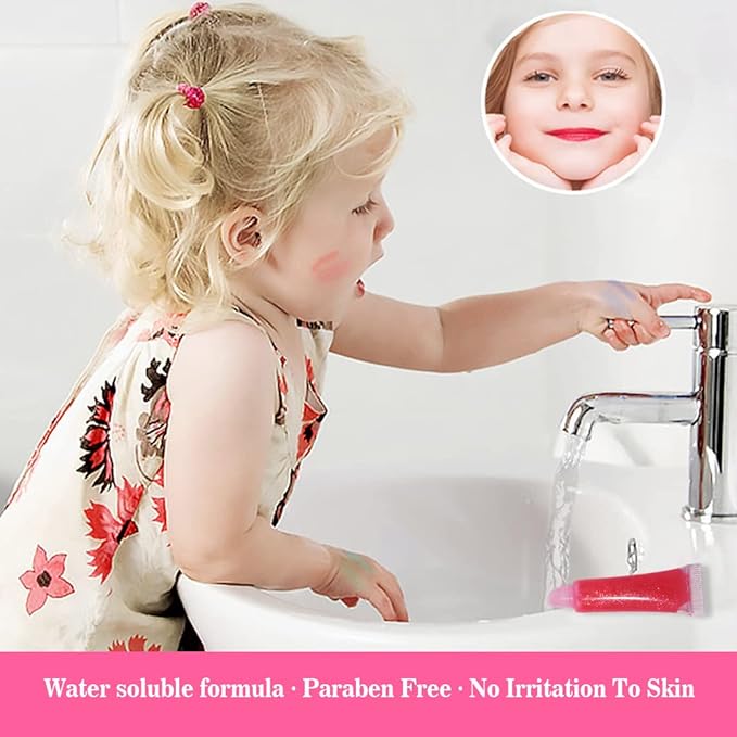 - HYDRATES AND NOURISHES - Designed for little girls, this shimmer lip gloss set is formulated with mineral oil for soft and smooth moisture-rich lips