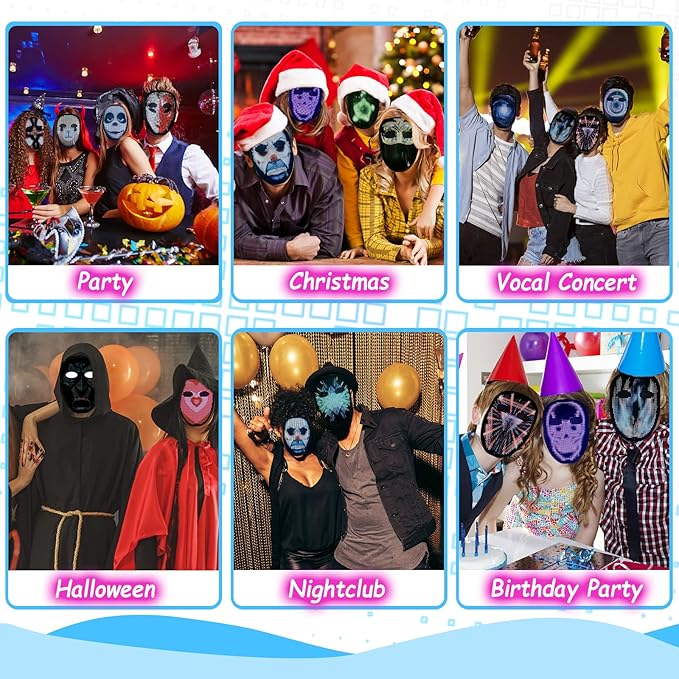 Depointer Life 2023 New Led Mask with Rechargeable Bluetooth-compatible App Controlled, Customizable Shining Mask, LED Lighted Face Transforming Mask For unisex-Adult