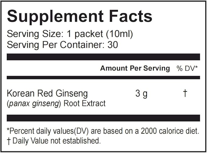 Korean Red Panax Ginseng Extract Liquid Drink, Made in Korea, All Natural 100% Pure Vegetarian Non-GMO Gluten Free, Supports Energy Vitality Mood and Immunity 10 ml x 30 Packets