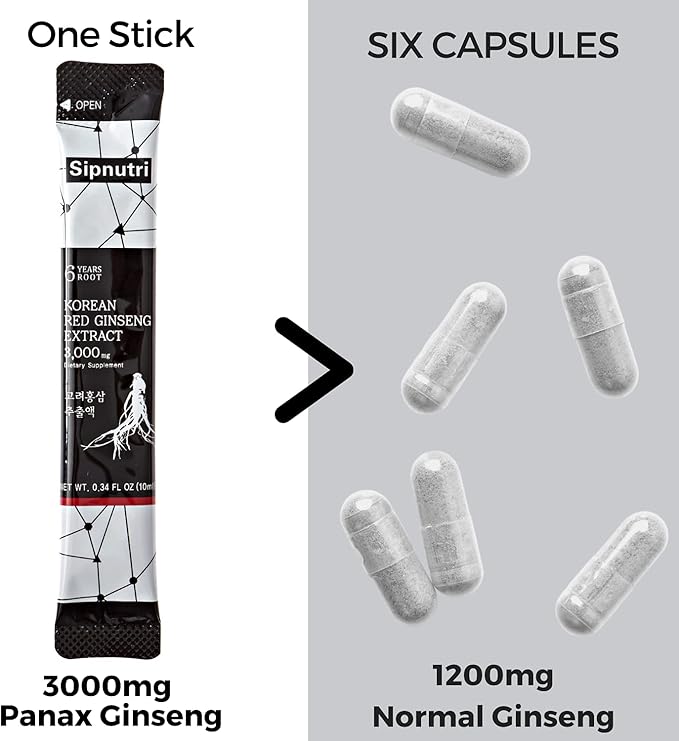 - Extra Strength 3000 mg Korean Ginseng Extract: Strong potency ginseng supplement, Sipnutri red ginseng root contains 70%-100% more key ginsenosides than other brands.