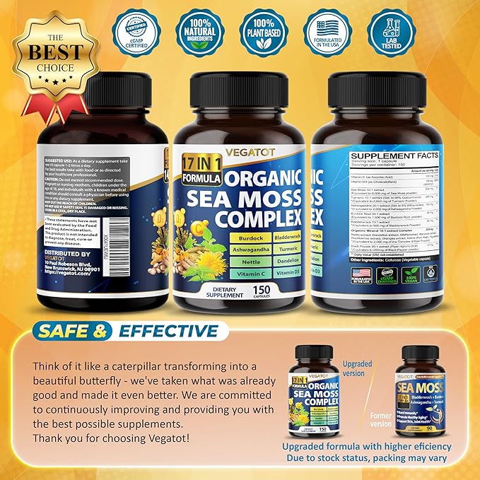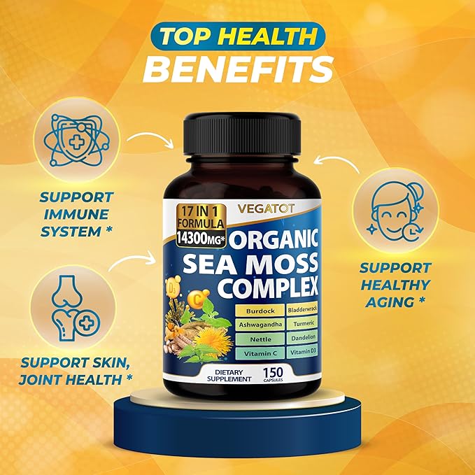- π π’π¦π§ π£π’πͺππ₯ππ¨π ππ’π πππ‘ππ§ππ’π‘: Each serving of Vegatot Sea Moss packs a combination of 17 powerful ingredients. Research studies have shown that Sea Moss, Bladderwrack, Burdock, and Black Seed have powerful effects in promoting immunity and overall vitality. While Turmeric, Vitamin D3 work together to support your skin & joint and HerbMineral-UpXV (TM) Complex is added to further strengthen the immune system. All of them work together to elevate your overall wellness.