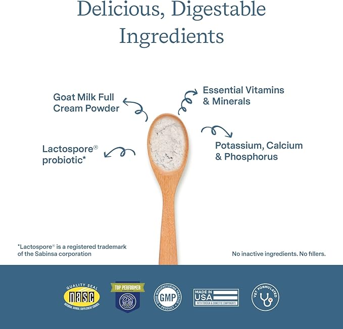 - No fillers: This cat and dog supplement is made with essential vitamins and minerals like calcium, potassium, phosphorus, plus Lactospore cat probiotic and dog probiotic; made with full cream goat milk for easy digestion