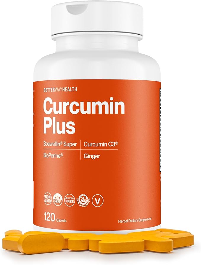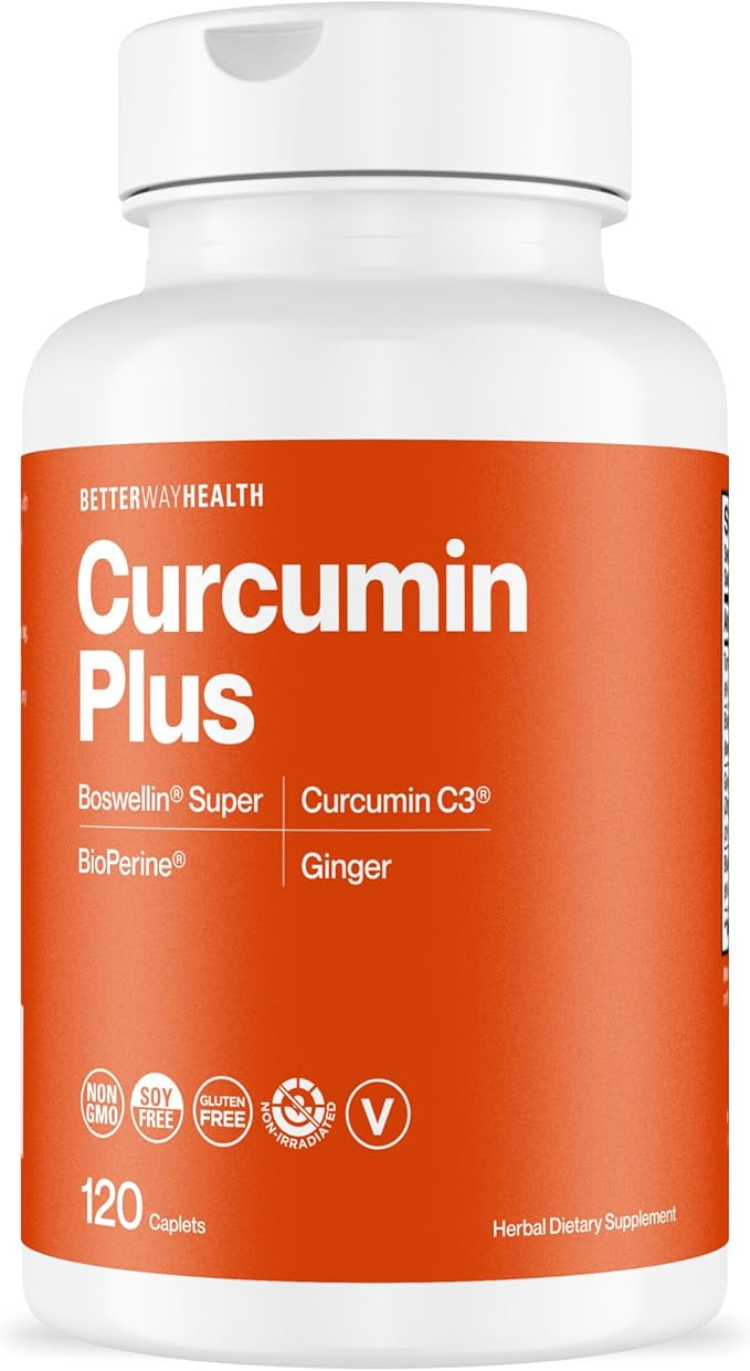 Better Way Health Curcumin Plus - Curcumin C3® Complex + Boswellin® Super + BioPerine® + Ginger - 120 Caplets