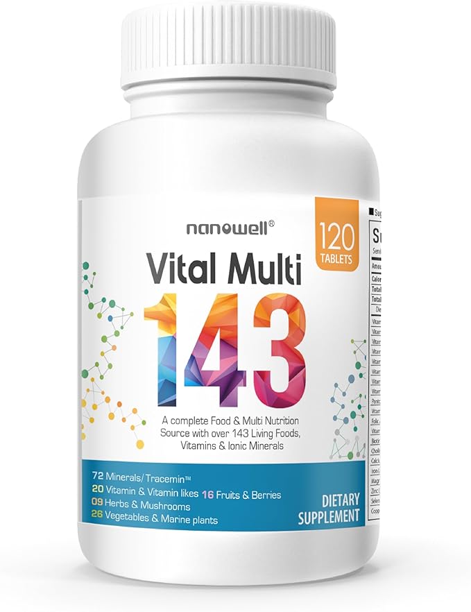 Vital Multi 143 - Multivitamin & Multimineral Supplement with 20 Vitamins and 72 Minerals,143 Ingredients Total - 120 Tablets, 30 Day Supply